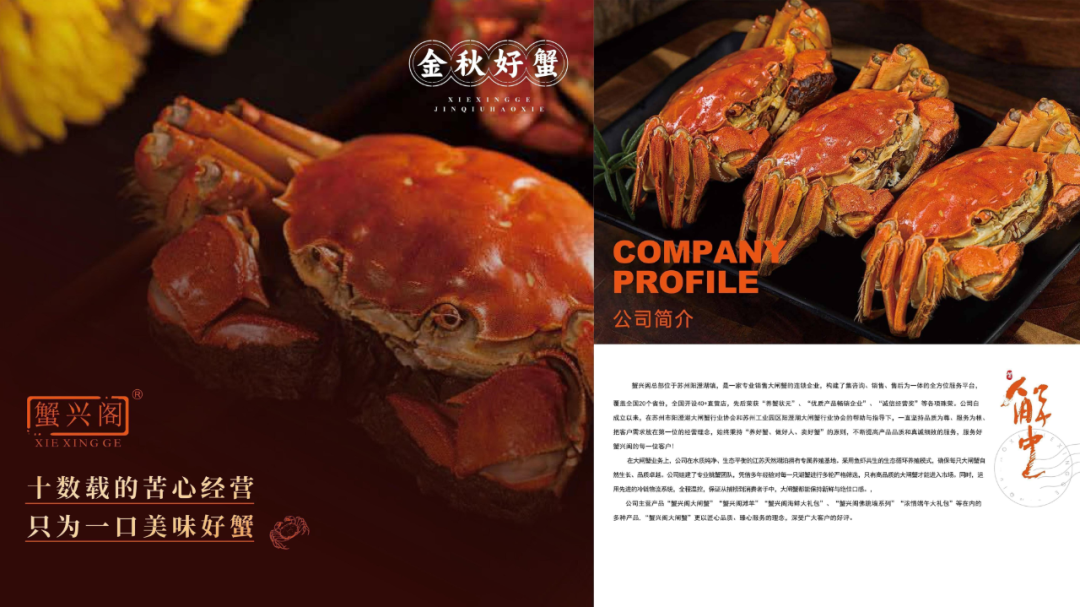 公司主營產品“蟹興閣大閘蟹”“蟹興閣灘羊”“蟹興閣海鮮大禮包”、“蟹興閣佛跳墻系列””“濃情端午大禮包”等在內的多種產品,“蟹興閣大閘蟹”更以匠心品質、臻心服務的理念,深受廣大客戶的好評。
