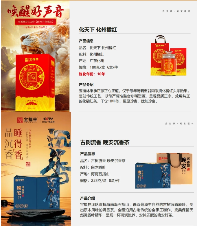 【優勢自主品牌】寶福林系列陳皮、小青柑、化州橘紅,石斛,鹿茸等滋補養生茶。