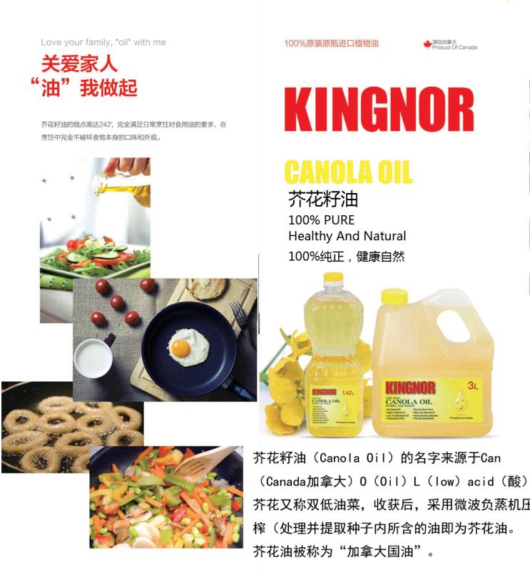 【基諾爾】芥花籽油:加拿大頂級優(yōu)質(zhì)健康的食用油,是美國、墨西哥主要的食用油,也是日本的第一大食用油,適合于東方烹飪方式,產(chǎn)品含有豐富的α-亞麻酸(Ω3)(是橄欖油的10倍以上)和亞油酸(Ω6),亞油酸(Ω6)和α-亞麻酸(Ω3)的含量比例為2:1,最符合人體需求的黃金比例。長期食用可以減少患心腦血管疾病的風(fēng)險(xiǎn),是唯一獲得美國食品及藥物管理局(FDA)健康聲明的食用油。